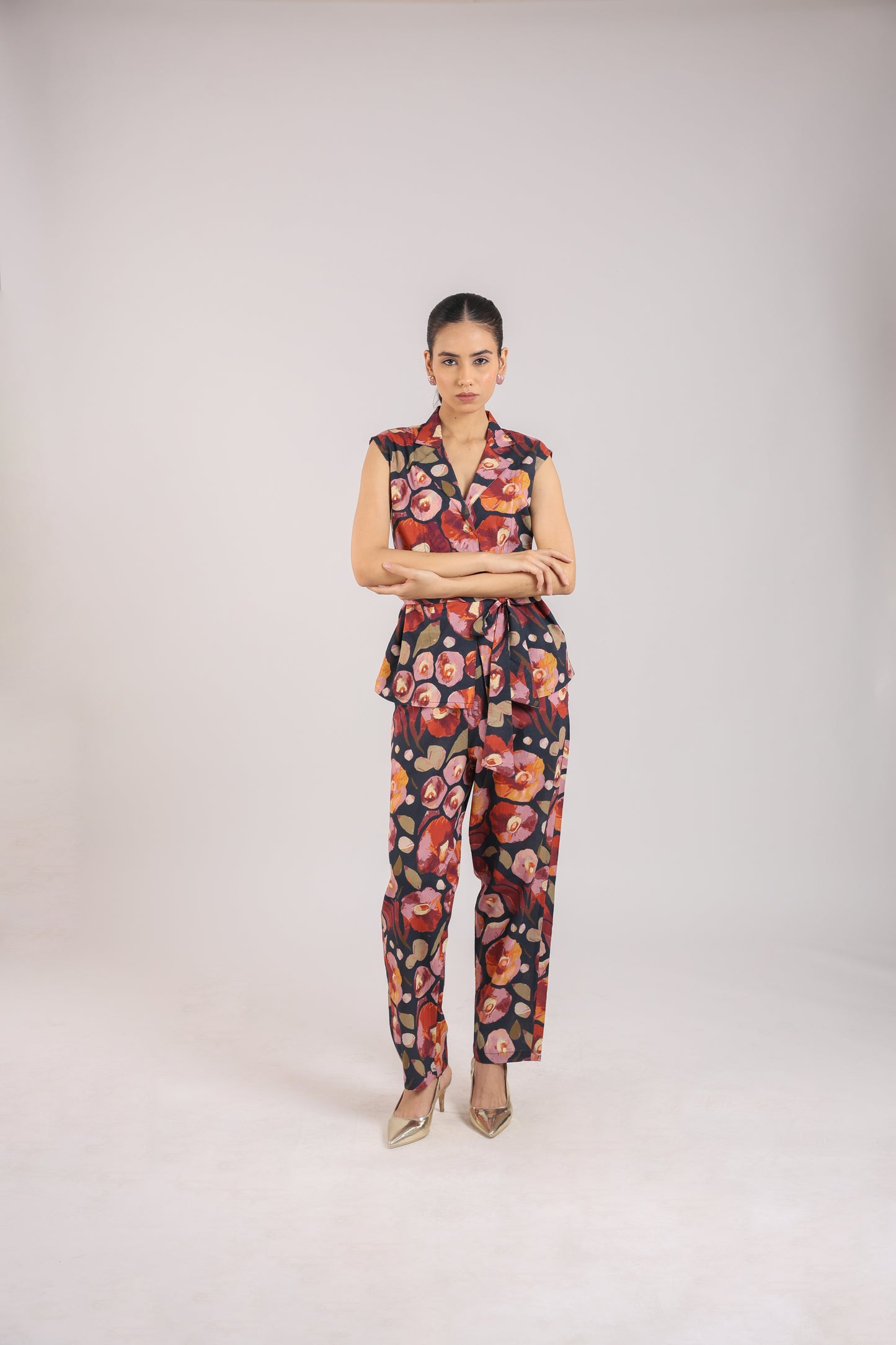 The Black Floral Tie-On Co-Ord Set combines a classic black base with a lively floral print, making it both versatile and eye-catching. The tie-on top allows you to adjust the fit to your preference, while the matching pants complete the look with ease. Ideal for any occasion, this co-ord set ensures you stay stylish and comfortable all day long.